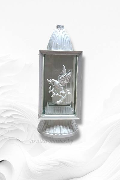 Траурная лампада «Капличка малая белая птица» Высота 28см. вкладыш. Материал: стекло+пластик 15,00 Br