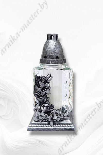 Ритуальная лампада "Z-155"(серебро). Высота 24 см. Материал: стекло +пластик.Вкладыш