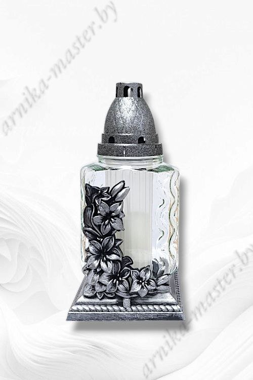 Количество товара Ритуальная лампада "Z-155"(серебро). Высота 24 см. Материал: стекло +пластик.Вкладыш