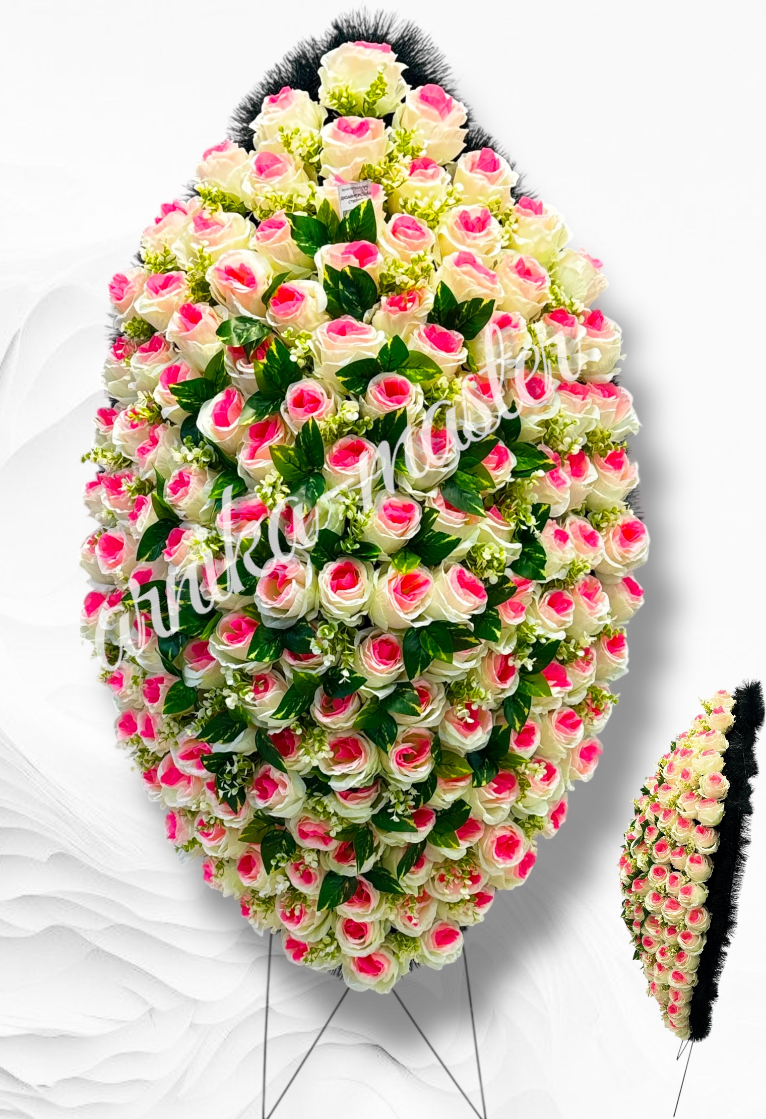 Ритуальный венок дизайнерский “Баккара” Размер 130/75см без учета ног,h ног-25см