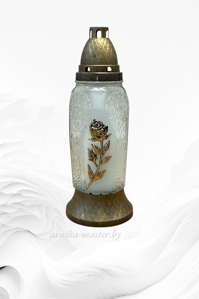 Ритуальная лампада 223 от компании Арника – это изысканный символ памяти, сочетающий элегантность и надежность европейского производства. Лампада представлена в золотом и серебряном цвете, а ее благородный облик подчеркивают изящный рисунок розы и утонченные узоры на стекле, создающие атмосферу почтения и светлой памяти.