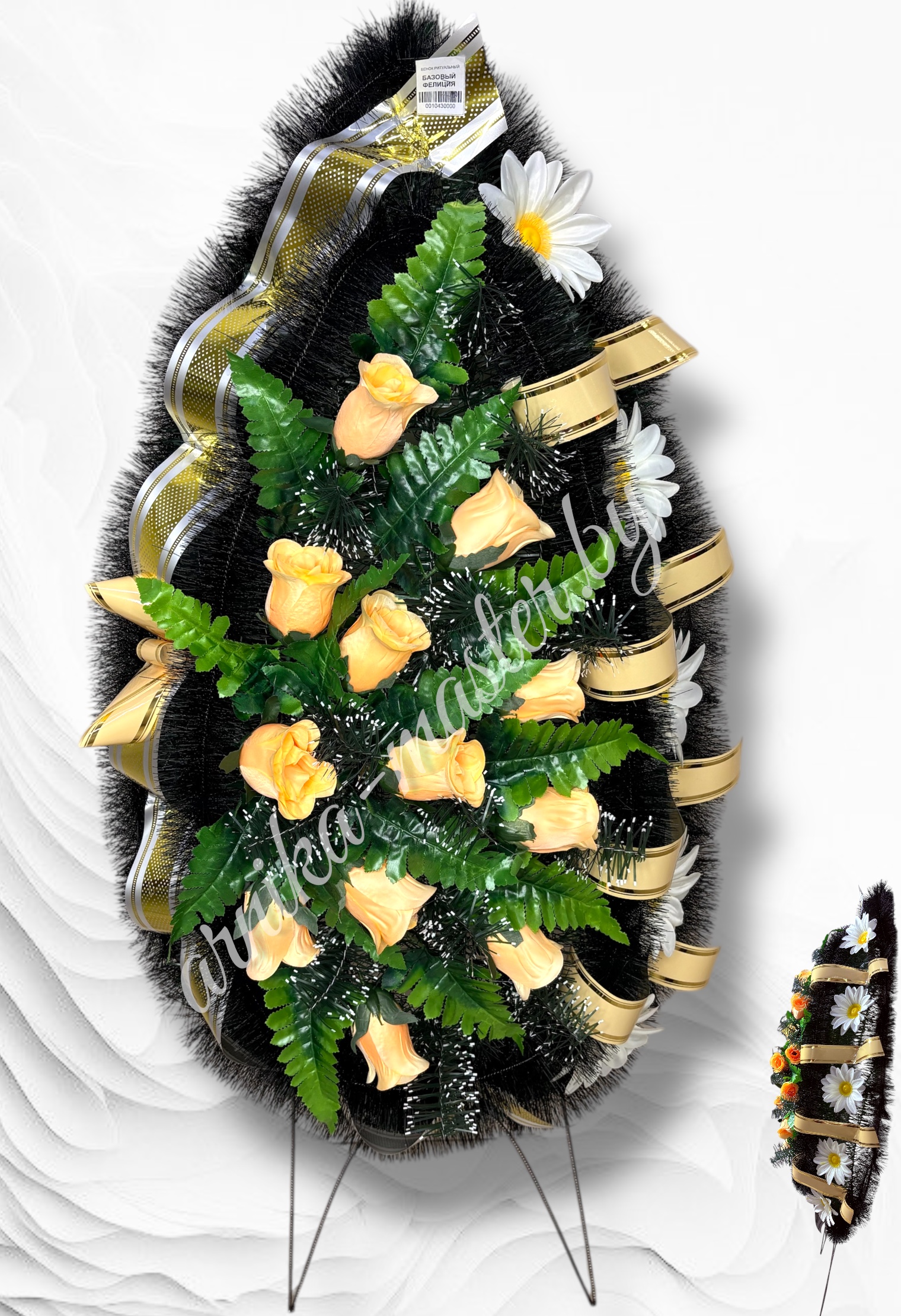 Главная Венки Коллекция венков "Базовые" Ритуальный венок базовый “Фелиция” Размер 100/60см без учета ног. h-ног 30 см