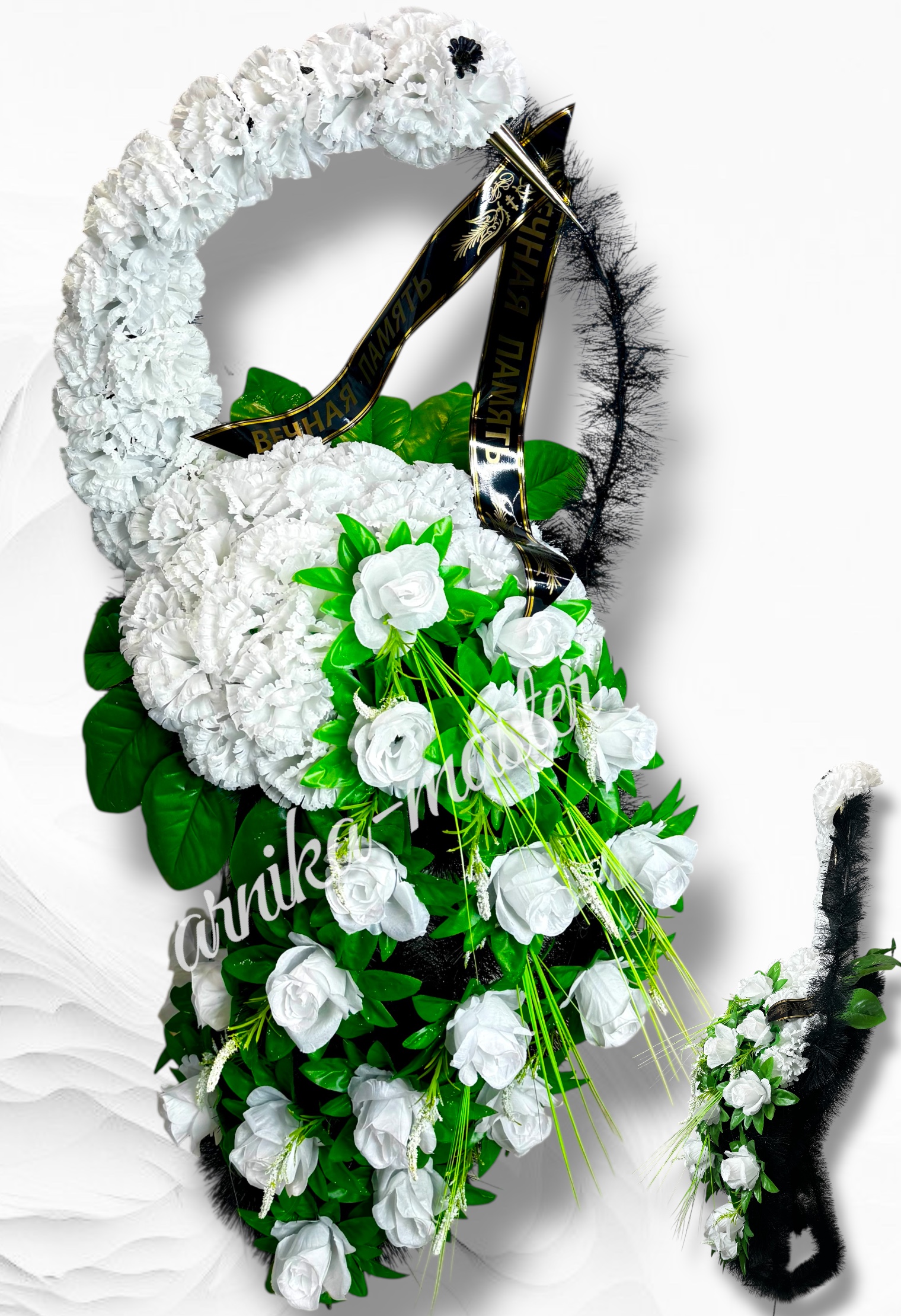 Вы можете также заказать на нашем сайте dekoflor.by оптом и в розницу не только ритуальный венок, но и ритуальные корзины, ритуальные лампады, ритуальные товары, ритуальные букеты и так далее. Мы предлагаем самые красивые и высококачественные венки и корзины от Арника – ведущего производителя Республики Беларусь. Мы заботимся о том, чтобы каждый элемент был идеально подобран, чтобы передать Вашу любовь и уважение к покойному. Пока вы ищите хорошие и качественные венки и корзины, у арники уже есть готовое предложение. Не теряйте время! Закажите у Арники!