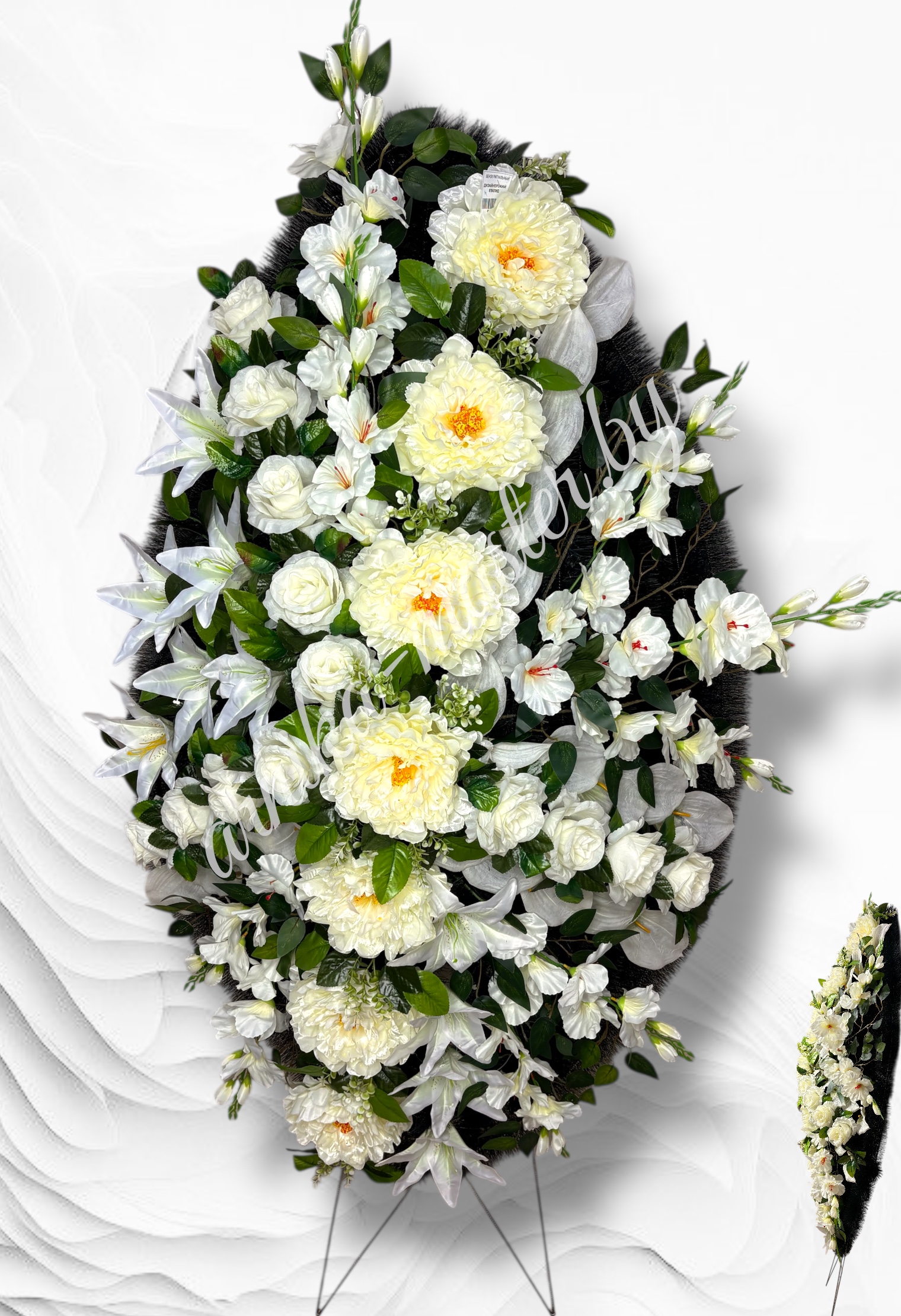Ритуальный венок дизайнерский “Калисто” Размер 110/65см без учета ног, h ног-25см
