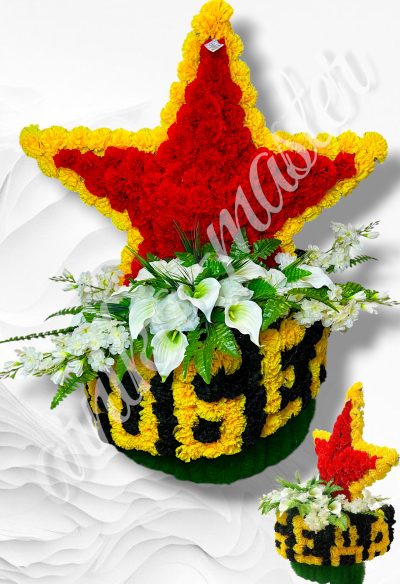Ритуальный венок на возложение “Звезда” Размер 110/65см без учета ног,h ног-10см