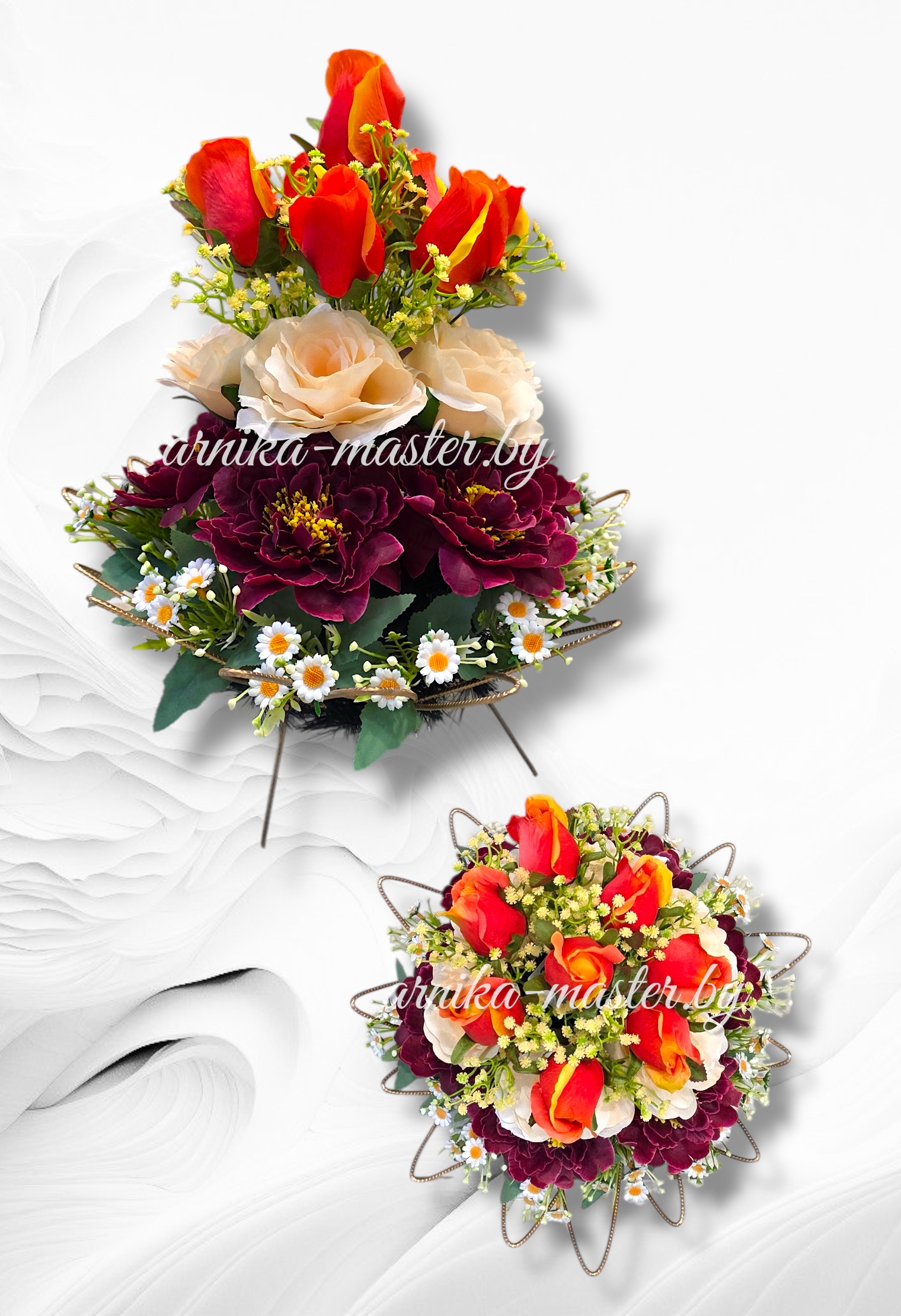 Ритуальный венок дизайнерский ”Стивия”. Размер110/60см без ног.h ног-25см