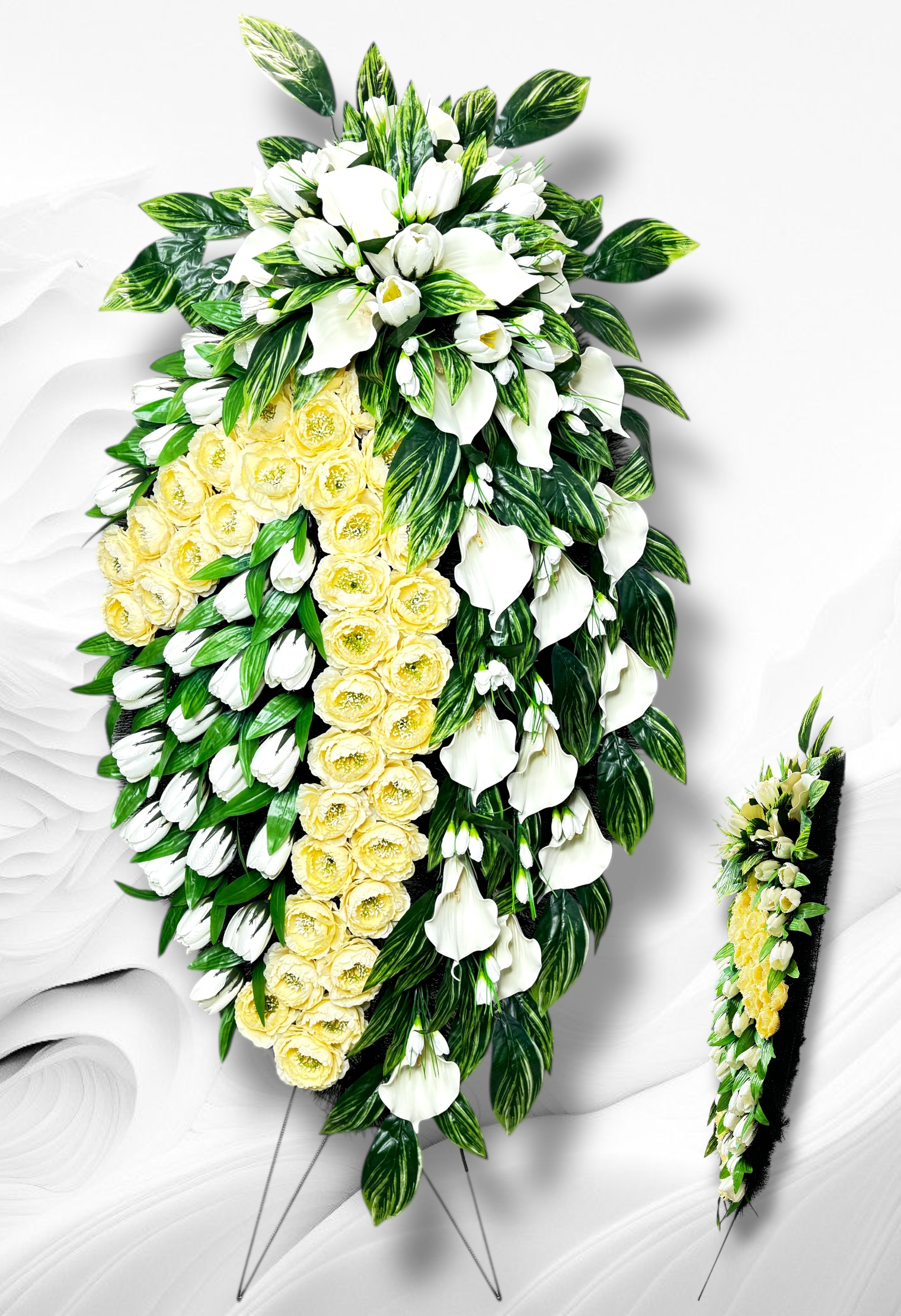 Траурный комплект дуэт «Дуэт Шарлиз» Размер венка 130/70см, корзины: 92/60см