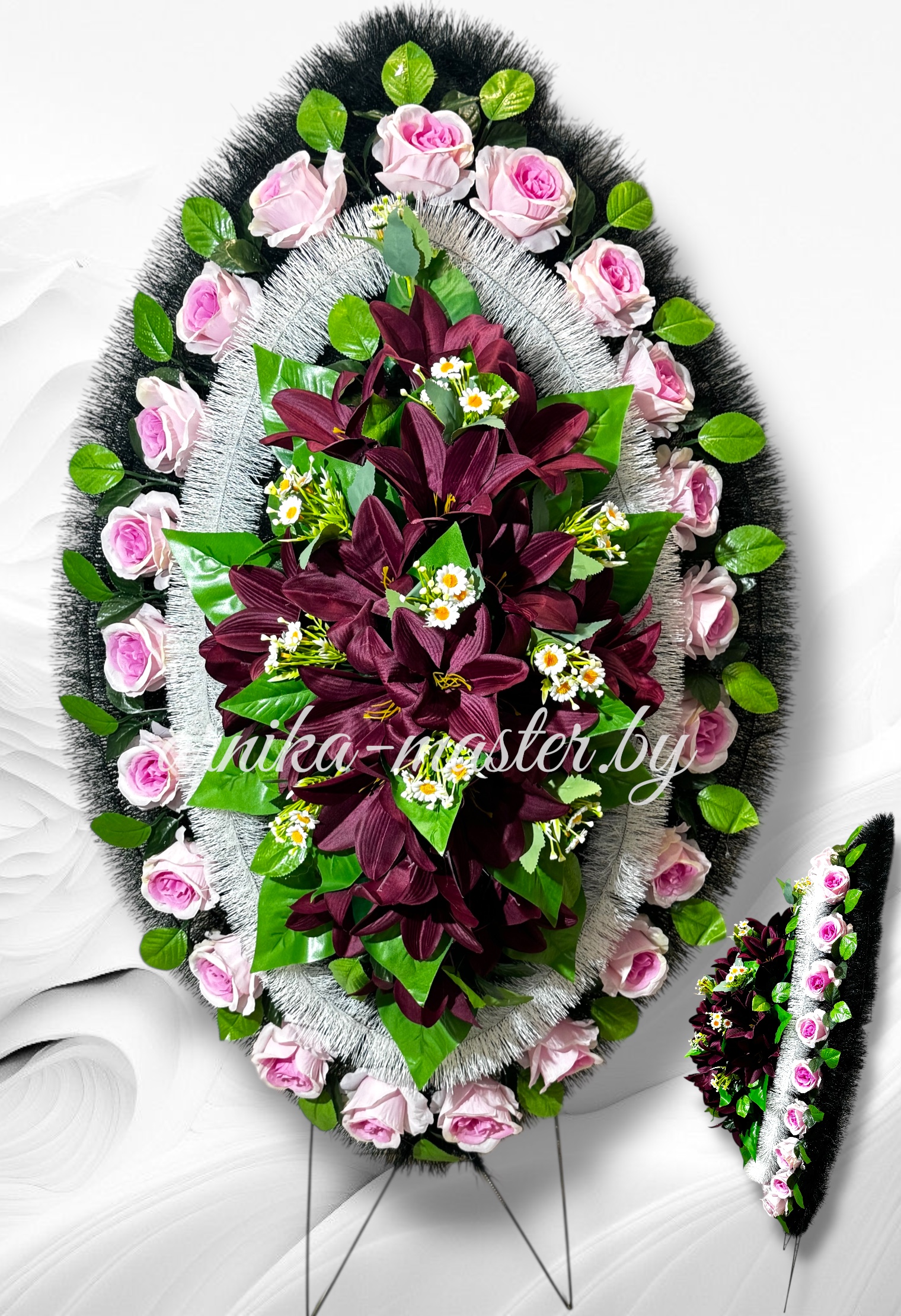 Ритуальный венок элит “Дедра” Размер : высота 110см без учета ножек. Ширина 65 см. Высота ножек 25см.