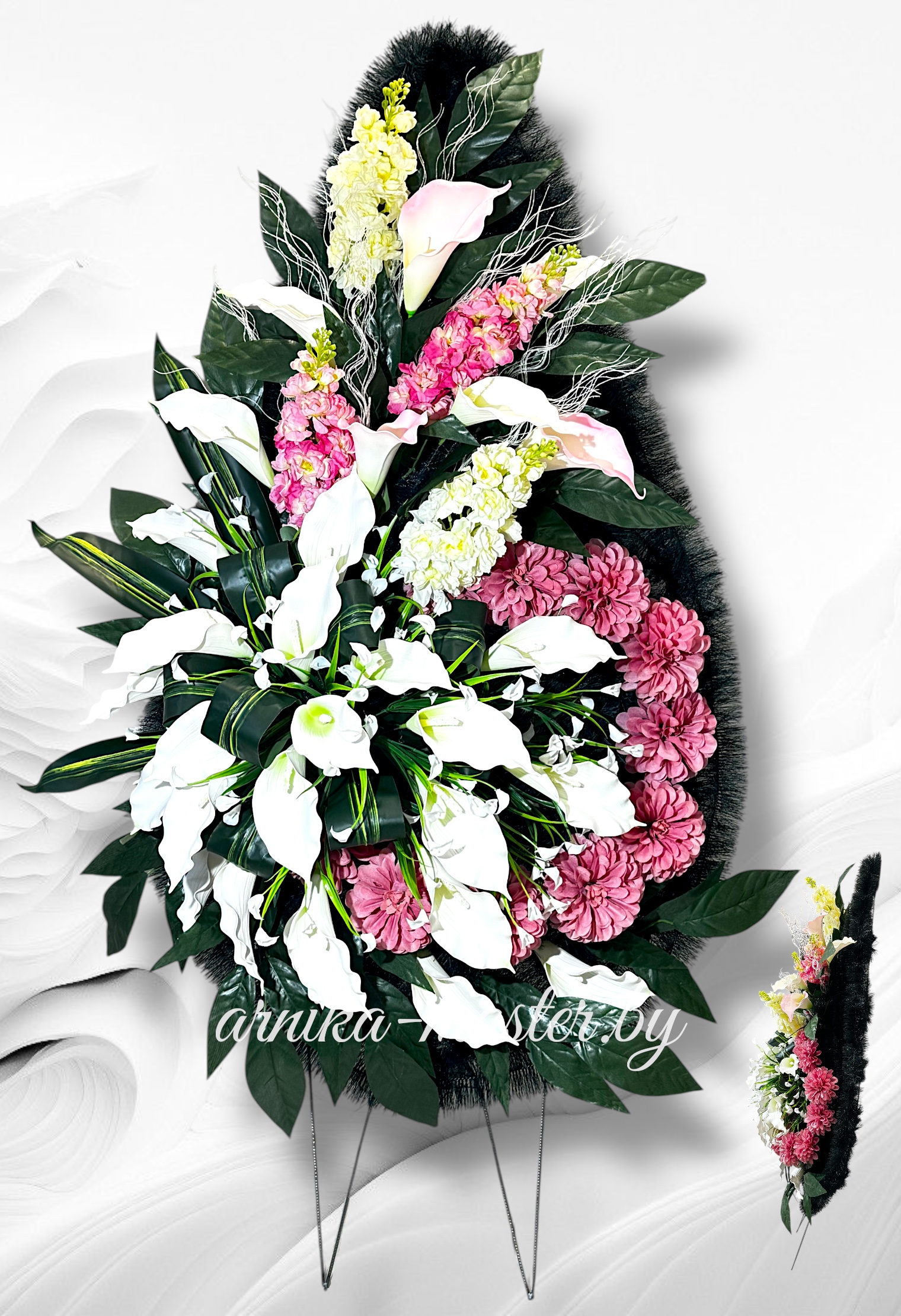 Ритуальный венок оптима1 “Фрейя” Размер : высота 110см без учета ножек. Ширина 65 см. Высота ножек 25см. НЕТ В НАЛИЧИИ