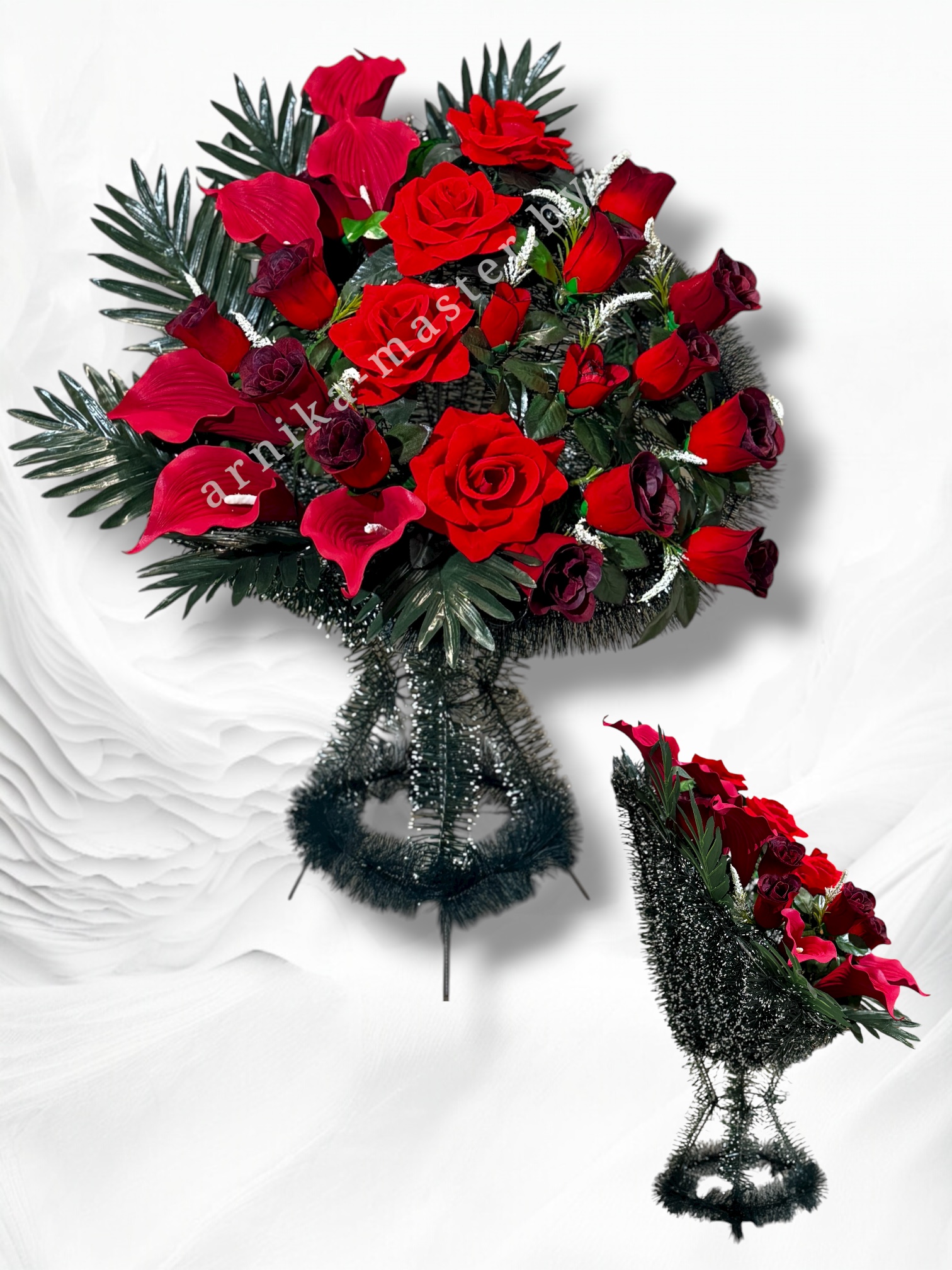 Траурный комплект дуэт «Дуэт Фарго» Размер венка 110/65см, корзины: 90/60см