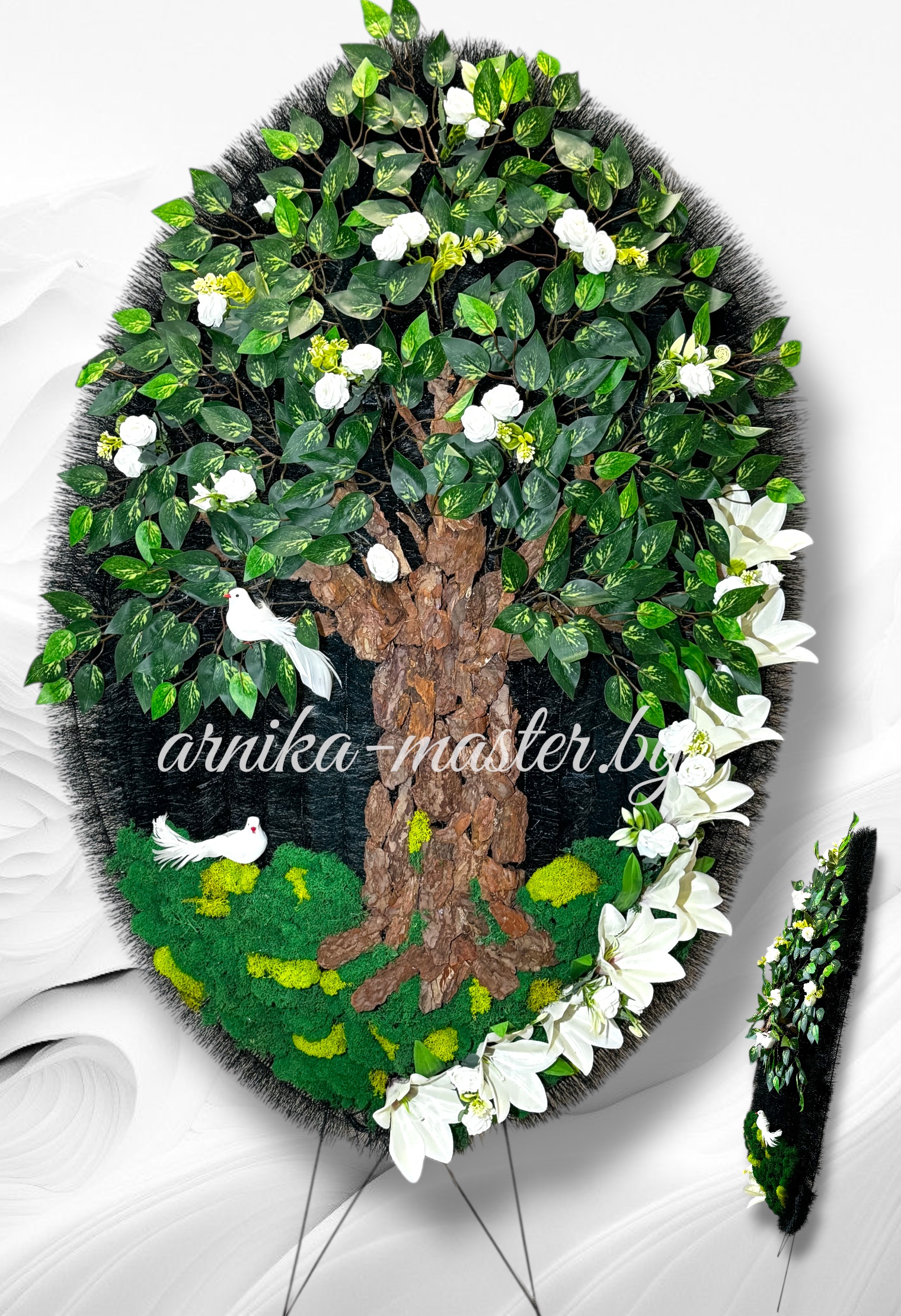 Траурный венок премиум ”Древо жизни”.Размер130/80см без ног.h ног-25см